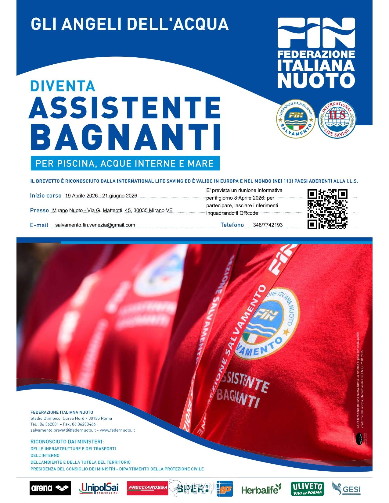 Evento CORSO ASSISTENTE BAGNANTI 12 Gennaio 2026 ‹ › × Gli Angeli dell'Acqua Il corso sarà organizzato nel nostro impianto. Riunione informativa 8 APRILE 2026 Per info: Segreteria Piscina / QR CODE